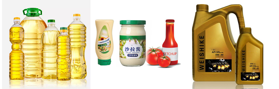 | ද්රව්ය පිරවීම | ෂැම්පූ, ලෝෂන්, ඉවුම් පිහුම් තෙල්, ලුබ් ඔයිල්, ඩිජර්ජන්ට් දියර, කෙස් තෙල්, මී පැණි, සෝස් යනාදිය | |||||